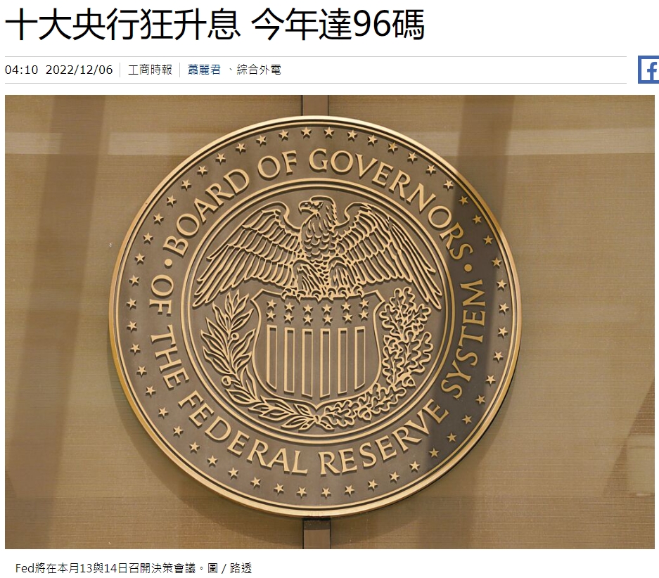 [2022/12/06] 【工商時報】十大央行狂升息 今年達96碼